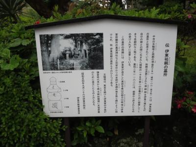 伊東市役所に隣接する物見塚公園は高台にあり、かっては地元の豪族、伊東家の館跡だったそうです。そこから北西方向に伊東祐親の墓と言われる五輪塔があります。周辺は住宅地になっていて、民家の間にある狭い場所に彫りがありました。ちなみに伊東祐親は平安時代末期の地元の豪族で親平家でした。