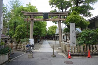 1909年に創建されたそうですから約100年くらいのまだ新しい神社です。周辺七ケ村で氏神様として祀られていた神様を神津神社として合祀したのが始まりです。ご祭神は応神天皇、神功皇后、菅原道真など九柱をお祀する神津神社は阪急十三駅東口から商店街を抜けるとあります。ご利益は厄除け、勝運、健康、学業などだそうです。