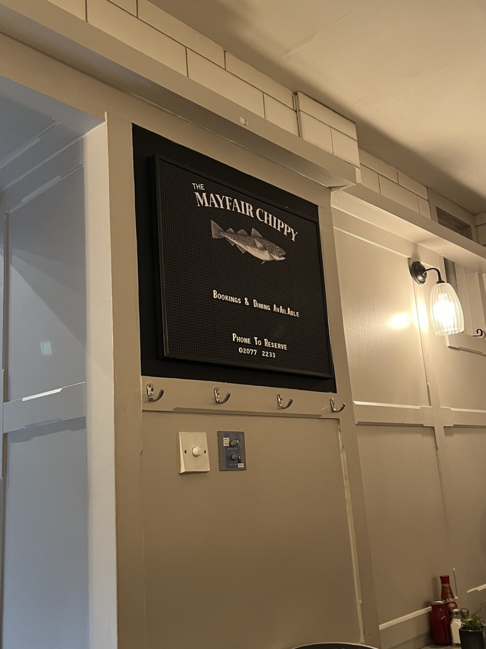 少し暑い日で、予約したにも関わらず、奥の冷房が効かない窓のない空気がこもった部屋に通されてました。送風機みたいなのはつけてくれたけど全然効かなくて、たまらずすぐに出ました。フィッシュ&チップスは少し食べかけていたけど、テイクアウトボックスを持ってきてくれました。