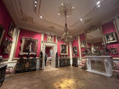 バッキンガム宮殿に併設する王室のギャラリー。私たちが行った時は「Style & Society: Dressing the Georgians」という特別展示が行われていました。18世紀のシャーロット王女の肖像画やドレスの実物、フランスのマリーアントワネットの肖像画などが展示されていました。日本語のオーディオガイドは無く、紙の印刷物を渡されましたがあまり関心がなかったので読まず、意外とすぐに見終わりました。