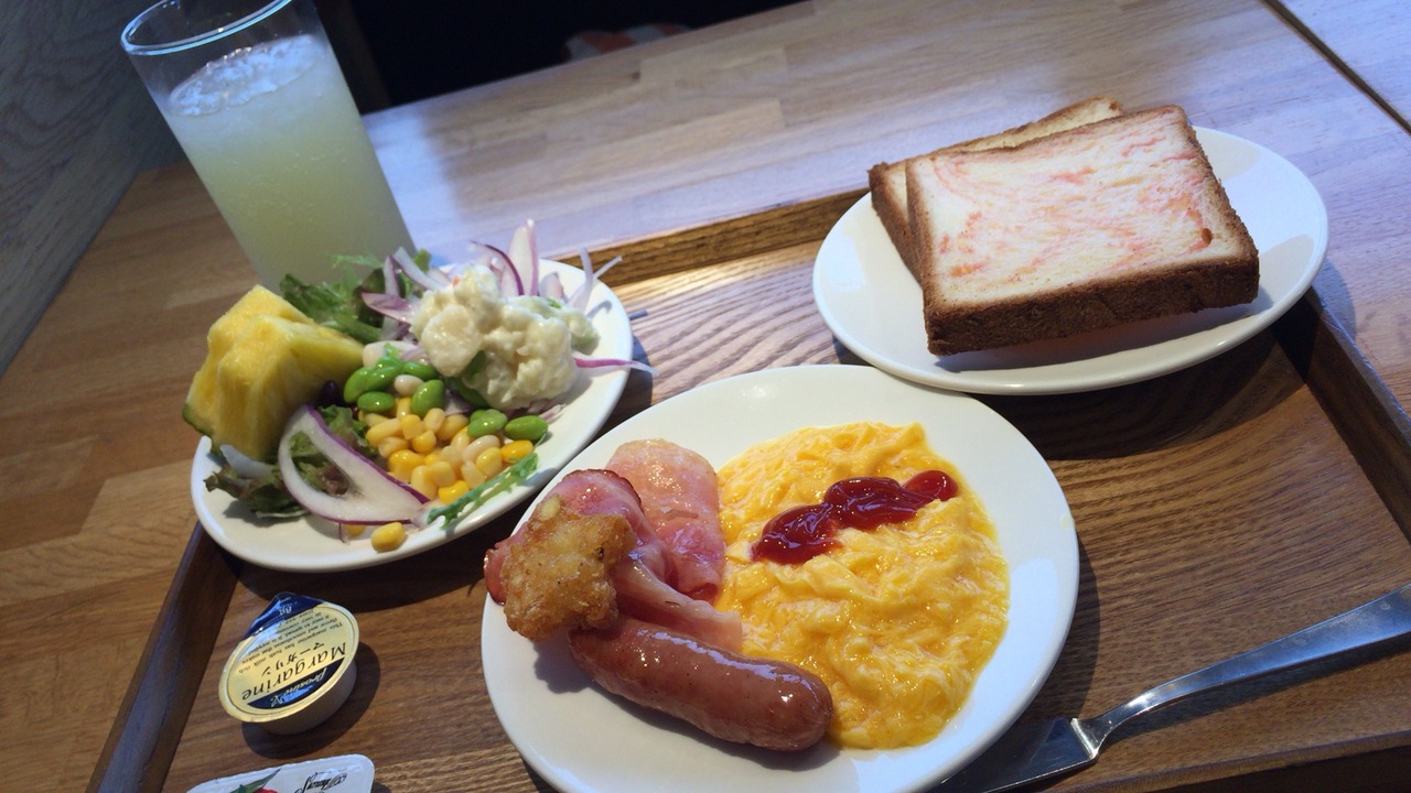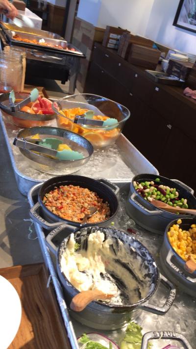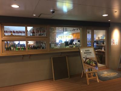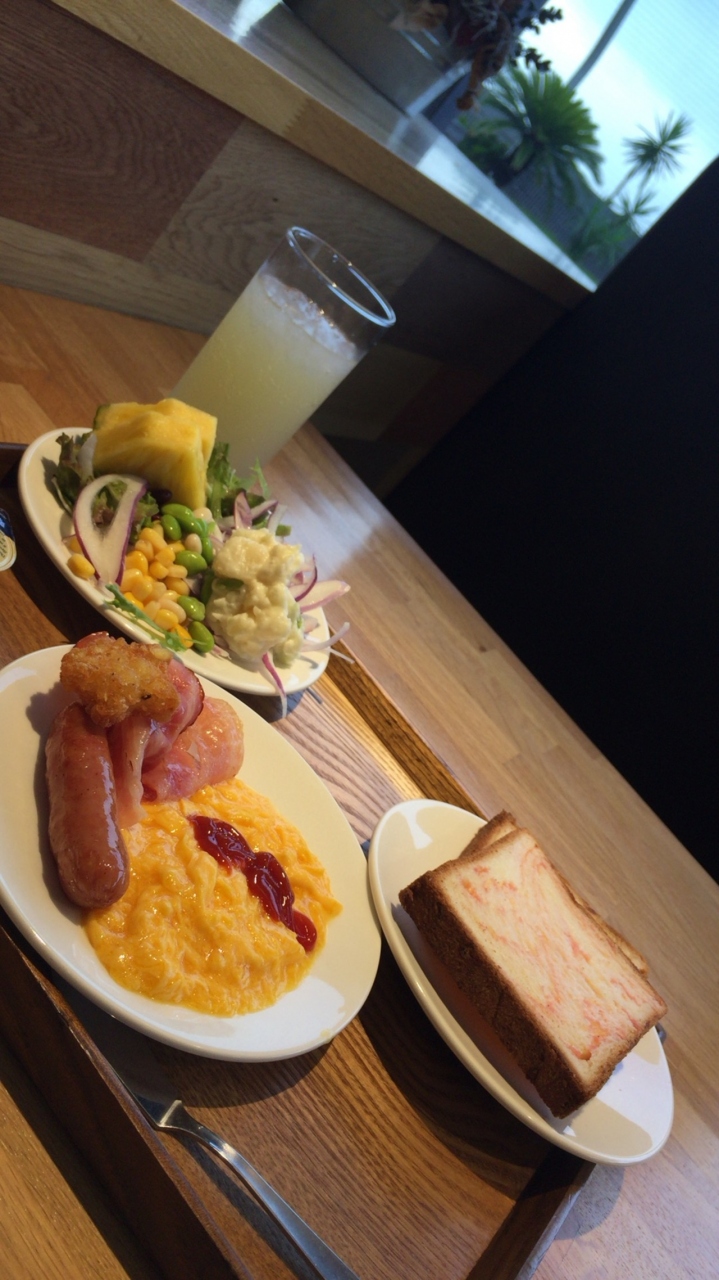 大阪国際空港(伊丹空港)の4階、展望デッキ前のおしゃれなカフェです。ハワイアンカフェですが、店内は意外と落ち着いた感じ。席によっては飛行機の離発着が見えるようです。朝の時間帯はブッフェのみ、850円プラス税。スクランブルエッグとベーコン、ソーセージ、サラダと果物とパン、ソフトドリンク、コーヒーもついてます。旅行前に明るい店内でゆったりと朝食をとることができました。