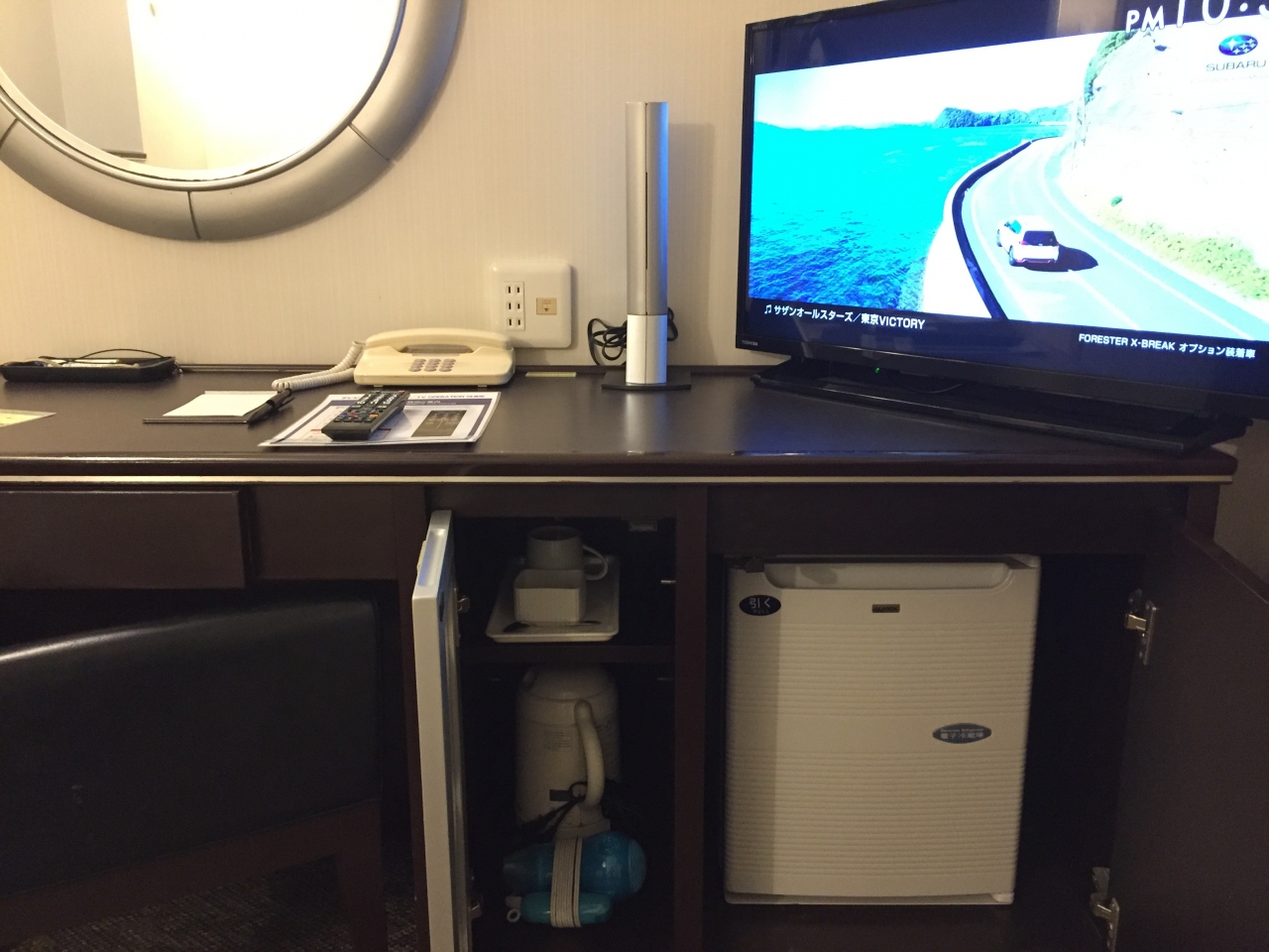 泊港に比較的近く、ツアー料金が安い宿を探して、GRG那覇を申し込みました。シングルルームです。お部屋はリニューアルされたのか、新しい感じがして清潔でした。冷蔵機やドライヤーはありますが、金庫は見当たりませんでした。アメニティは歯ブラシとカミソリのみ。セパレートタイプのパジャマあり。カードキータイプですが、部屋の扉の横に挿すようになっていて、カードキーを抜いたら電気もテレビもエアコンも消えてしまう仕組みです。カードキーを挿すとまた点くんだけど、テレビはNHKに戻っちゃうし、なぜかエアコンはONにならず手動でONし直さないといけないのでちょっと不便でした。