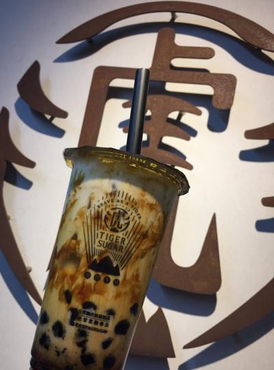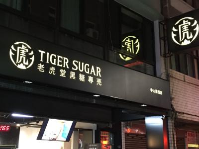 今流行りの黒糖タピオカミルクティーのお店。新光三越横の路地を入ったところにもあります。(項目が見当たらないのでこちらに投稿します)黒と虎柄を基調としたかっこいい外観のドリンクスタンド。漢字の並んだメニューにどれを頼めば良いのかわからずたじろいでいたのですが、黒い帽子、服、マスクの愛想のない女性店員さんが、チラシを指差して「これを頼みたいならこれよ」みたいな感じで一言も発さず伝えてくれました。なのでそれを頼んだら思ってたやつでした。味はすごく美味しいです。もう普通のタピオカミルクティーには戻れません。黒糖マストです!ちなみに翌日台北101の隣のビルにあるTigerSuger老虎堂に行ったら、こちらの店員さんは愛想良い感じで対応してくれました。
