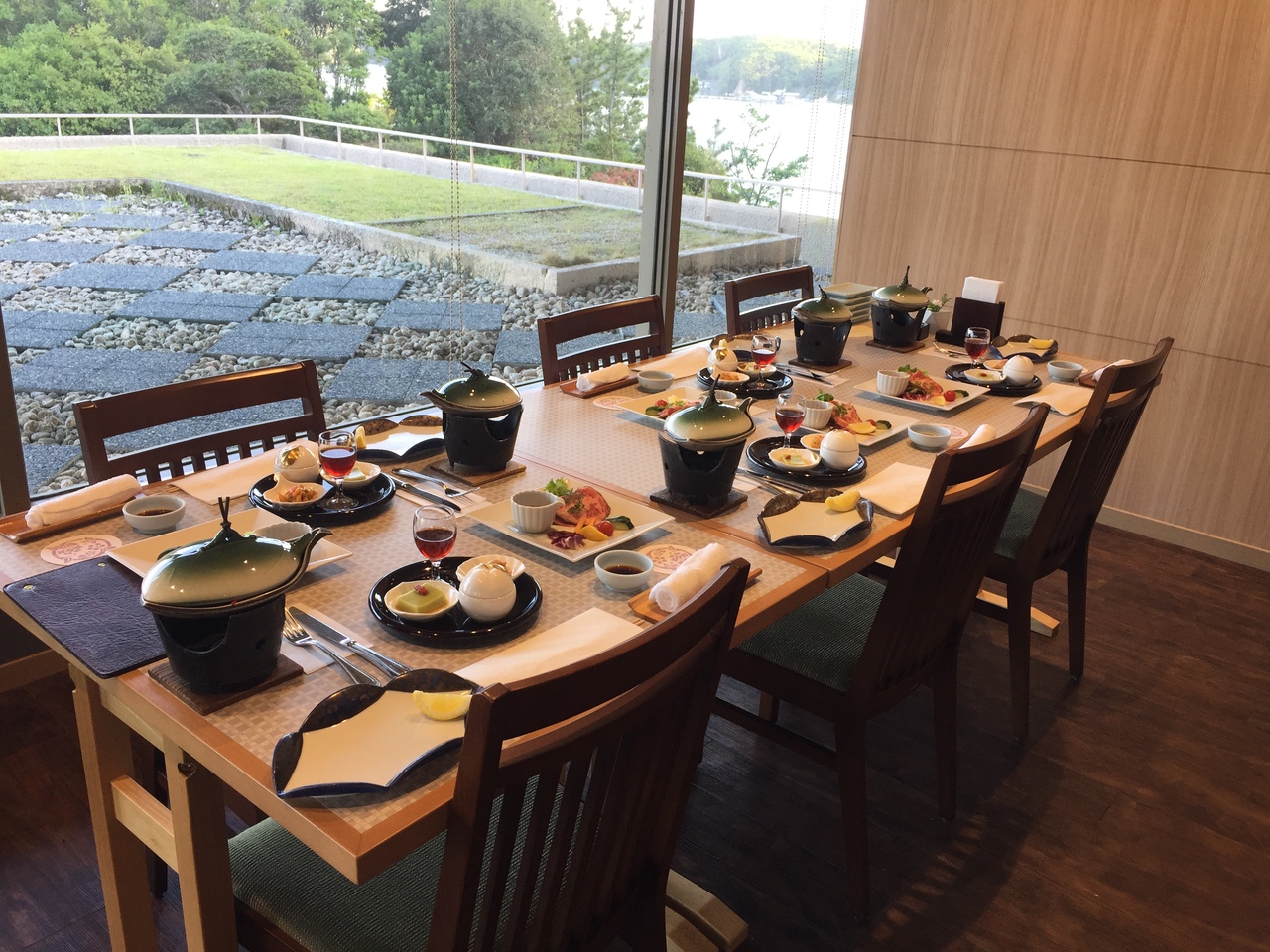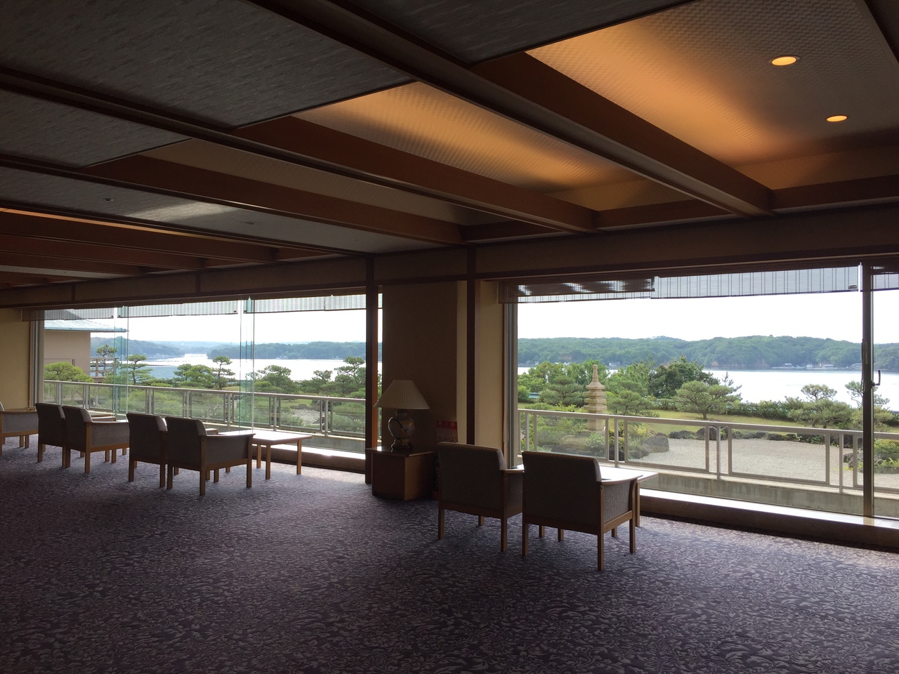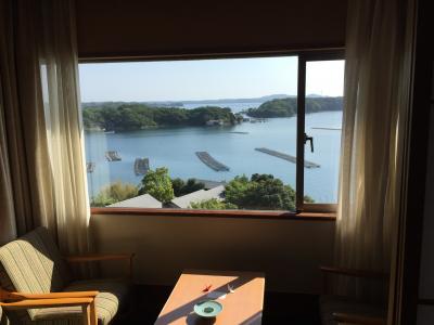 両親も連れて3世代で宿泊。お伊勢参りを済ませ、車で40分ほどで到着しました。近鉄賢島駅の近くです。館内は滝が流れたり茶室があったりしてとても豪華。英虞湾に面していて真珠の養殖の筏や夕日などの景色も楽しめます。こちらの中庭では2016年の伊勢志摩サミットで安倍首相が会見を行ったそうです。桟橋があって釣りもできるようです。