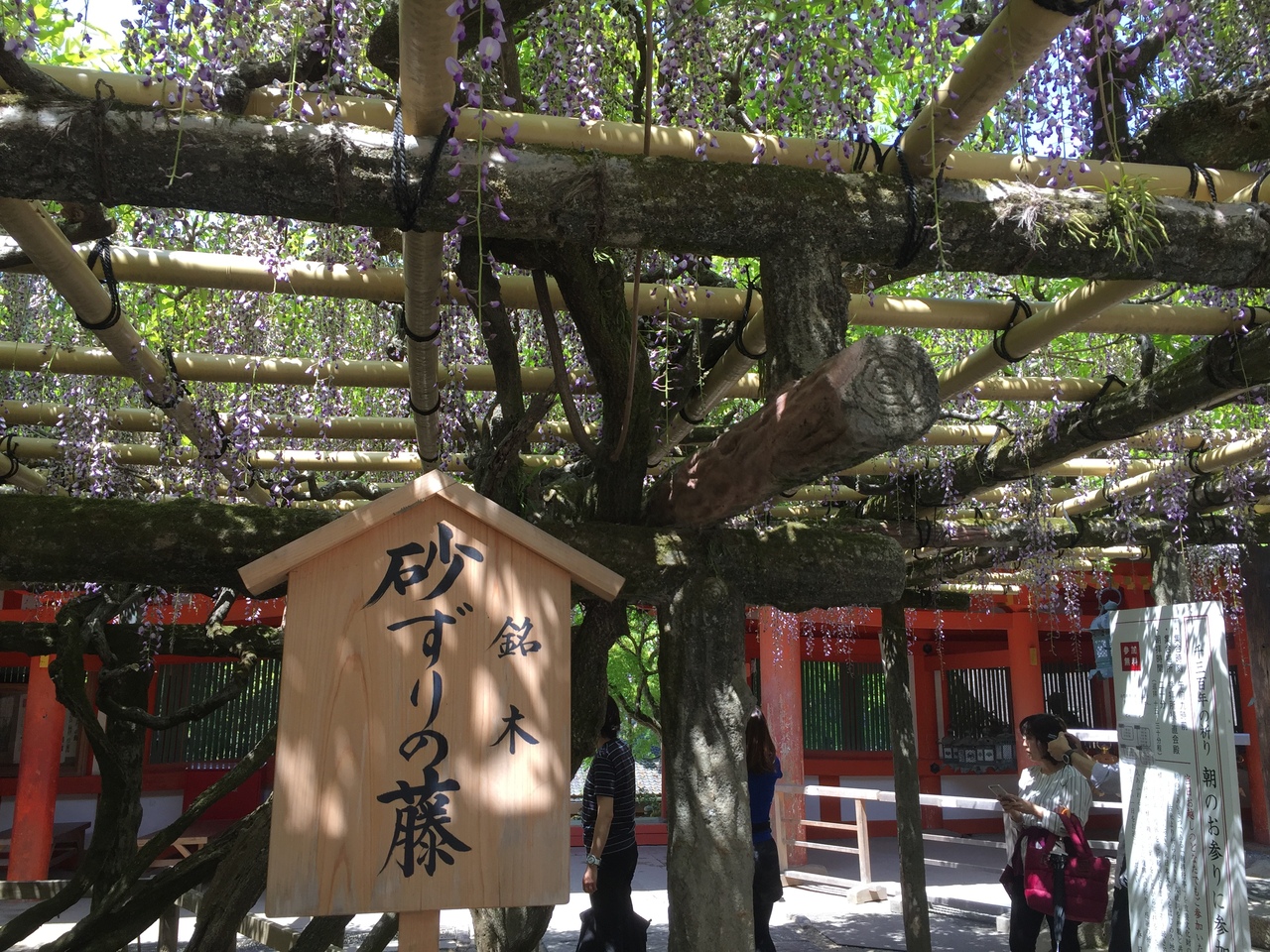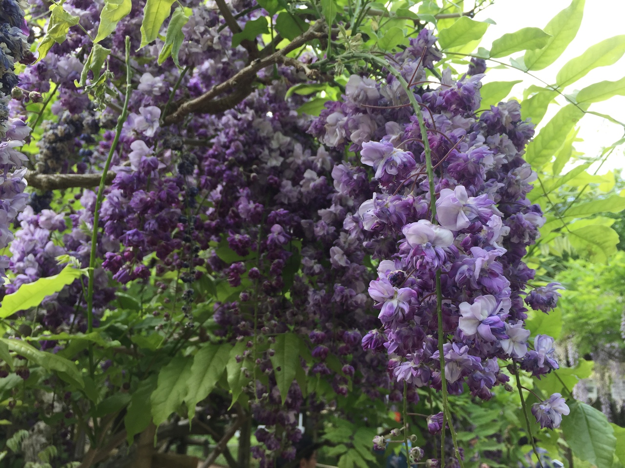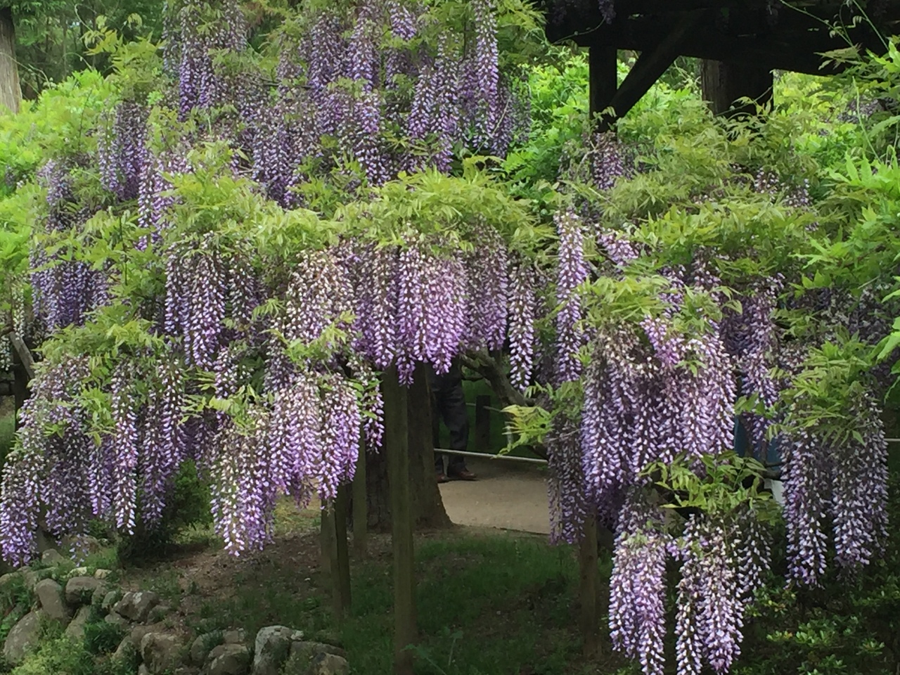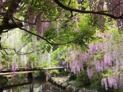 夕方の関西ローカルのニュース番組でお天気キャスターの蓬莱さんが中継していたのを見て、萬葉植物園を初めて知りました。GW期間中、9時の開演と同時に入場、「藤の園」と名付けられたエリアは20品種200株の藤の花が咲き乱れていました。藤の花の良い香り漂っていてとても癒されました。藤の花が描かれた大判のガーゼハンカチ600円は午前中には売り切れますよと言っていました。