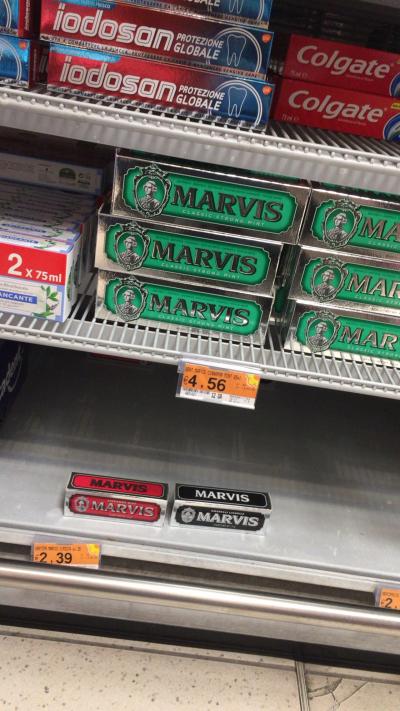 テルミニ駅地下にあって夜遅くまで空いている便利なスーパーです。ツアーの合間にお土産を買うのにちょうど良いです。ただアジア人観光客が多く、人気の商品に限っては品切れしていることがあります。私が行った時はちょうど卒業旅行シーズンだったからか、学生に人気の歯磨き粉MARVISの小さい方がほとんど売り切れていました。