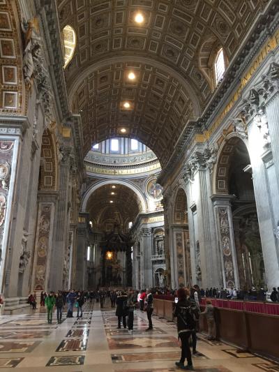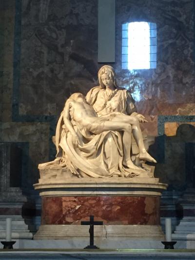 ガイド付きツアーでヴァチカン美術館見学の後にそのまま入ったので、並ぶことはありませんでした。ミケランジェロが23歳の時の作品ピエタや、聖ペテロの像、ベルニーニの作品ブロンズの天蓋、ラファエロのキリストの変容のモザイク画など、見所いっぱいです。