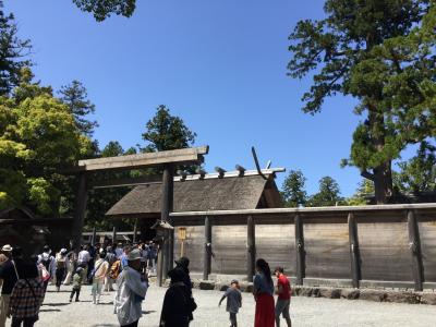 GWの真っ只中に車で行きました。お正月など混雑が予想される時期は伊勢自動車道の伊勢西ICと伊勢ICの出口が封鎖されます。私たちは1つ手前の玉城ICで降りて向かいました。お昼過ぎでしたが、なんとか外宮横の駐車場に止めることが出来ました。