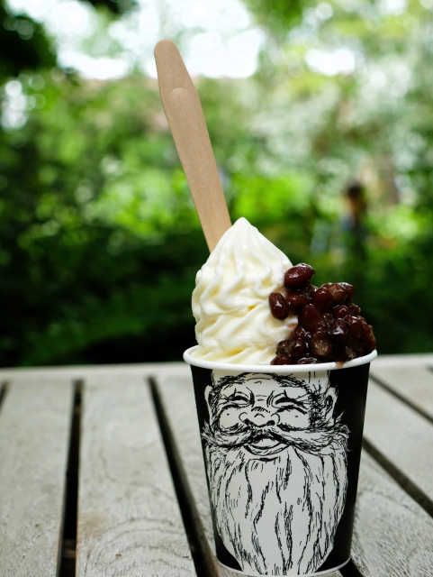 上野ファームにあるカフェで、ガーデンに入場しなくても利用できますし、カフェの食べのをテイクアウトしてガーデンに入場できます。ソフトクリームはボリュームがあり、地元の牛乳を使っていて、アレンジがいくつかあるので選びがいがあり、美味しいです。カフェ内はエアコンが効いているので暑くても快適ですし、お天気の良い日はガーデンに面したテラス席で寛げます。小さな揚げ芋のポテッコは小ぶりで食べやすくお勧めです。カフェ内は広いのでゆったり休憩できます。