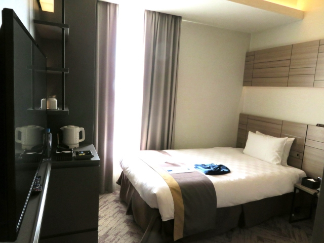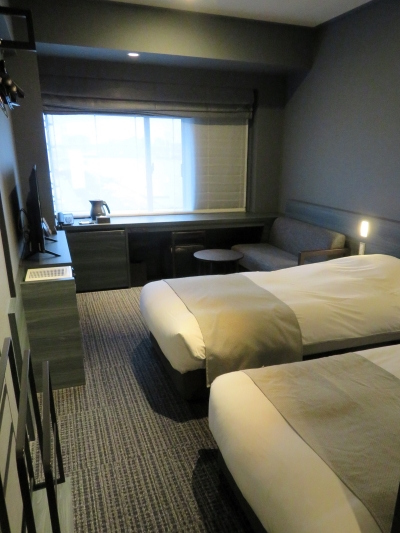 「ジョブキタ北八劇場」でお芝居を観るため、隣りにあるこのホテルを選びました。フロントはカッコ良いですが部屋はビジネスホテル形式で、コンパクトながら使い勝手が良いと感じました。大浴場があるのでゆったりお風呂に入ることができました。アメニティに過不足なく、大浴場に色々備えてあるので助かりました。ただ、幹線道路に面しているので、夜間や早朝の車の音がうるさく気になって目が覚めてしまい、十分眠れませんでした。フロントの接客他は良かったので残念です。