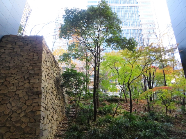 大手町タワーに併設するように造られた人工の林です。森というにはおこがましいけれど、大都会の貴重な緑で、ビル街に一服の清涼感を与えてくれます。都市緑化に一役買っている場所で、春の芽吹きから紅葉まで四季を感じさせてくれる都会のオアシスでしょうか。