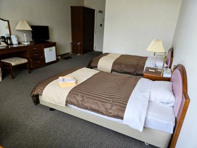 陽殖園を訪れる度に、ここに泊まっています。紋別空港から車で40分ほどで着くので、北海道的には案外近いです。陽殖園を目的にした食事付き宿泊プランの際は、紋別空港と陽殖園へのホテルの送迎サービスがあります。建物は古めですが、アメニティに過不足なく清潔で、温泉もあるので、夜はリラックスできます。この日はシングルを予約していましたが、ホテルの好意でツインになりました。部屋が広いので荷物を広げても苦になりませんでした。近くにコンビニが無いので、必要なものはどこかで買ってから持ち込んだ方が良いです。陽殖園フアンには特におすすめの宿です。陽殖園のフアンに会え、話が弾みました。