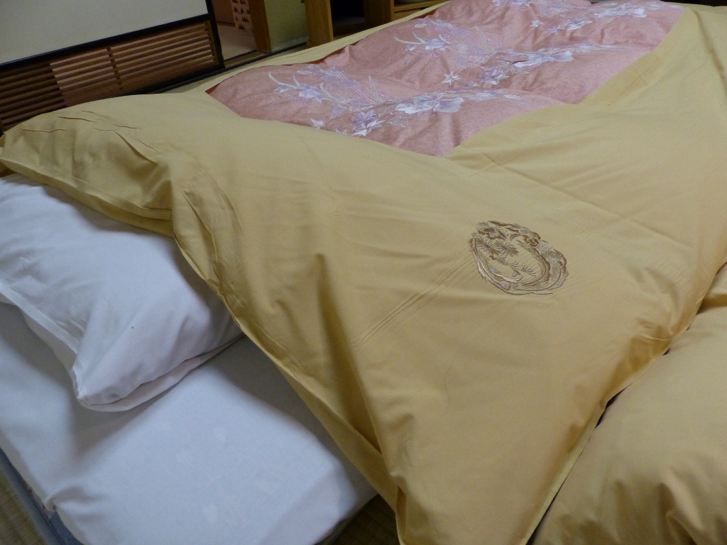 ただ、残念だったのは、掛布団のカバーです。シーツ、枕カバーともに新しいものだったと思うのですが、掛布団のカバーだけは使いまわしのような感じで、首元だけに新しいカバーを付けてあるものでした。シワくらいならあまり気にもならなかったのですが、布団をめくってみたら、シミが3か所ほどついていました。ポツポツという小さなシミではなく、拳くらいの範囲に無数のシミがあって、さらにそんな状態のものが3か所ほど。タオル、浴衣が2枚もうれしいのですが、掛布団のカバーが洗濯してあるもののほうが良かったなと感じます。
