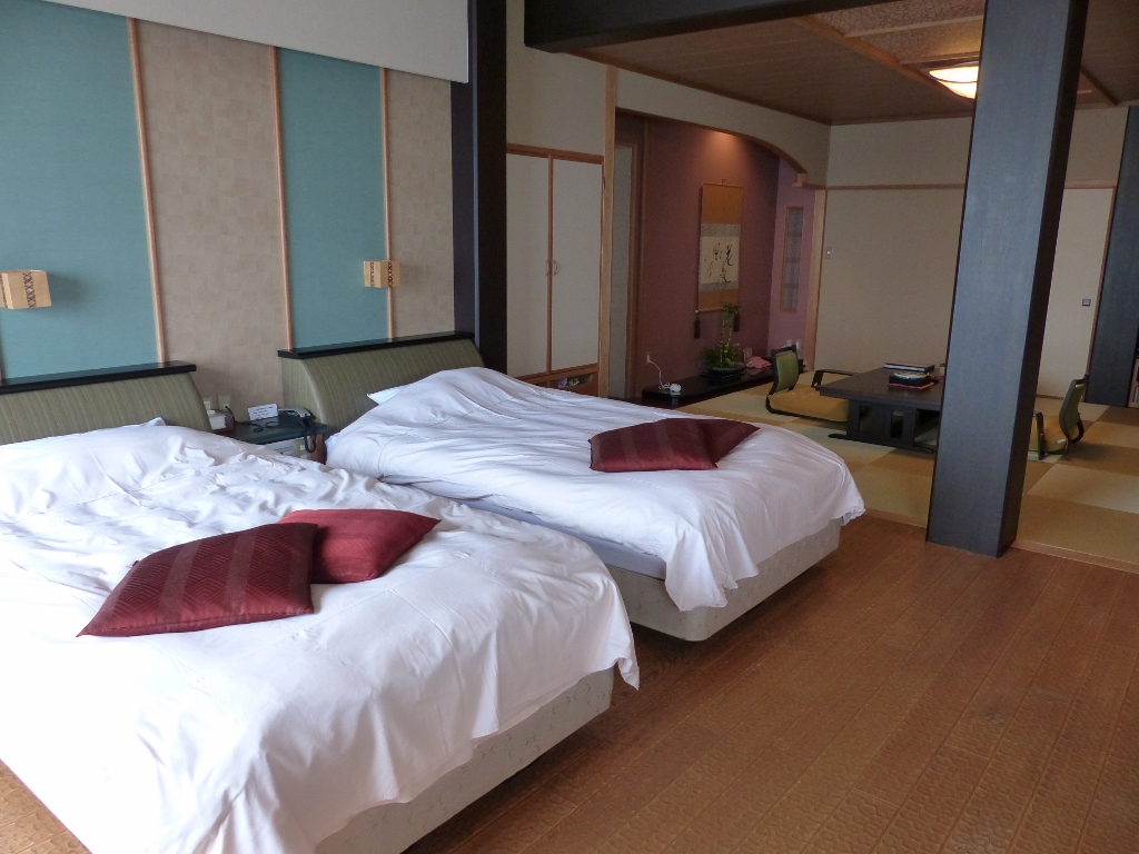 角部屋だったのでそれぞれの窓から地獄ビュー、広さも十分でした。ただ、和室から洋室、洗面所への移動にその都度スリッパを履くのが少し面倒でした。