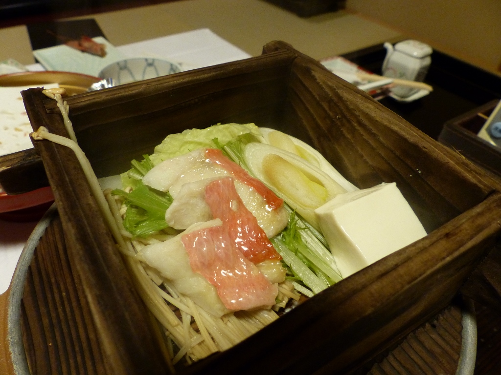 食事は値段相応の内容で、ボリュームがあり、美味しくいただけました。メインが地鶏の朴葉焼きだったと思うのですが、お値段によってはこれが変わったり、カニが付いたりという具合なのだと思います。