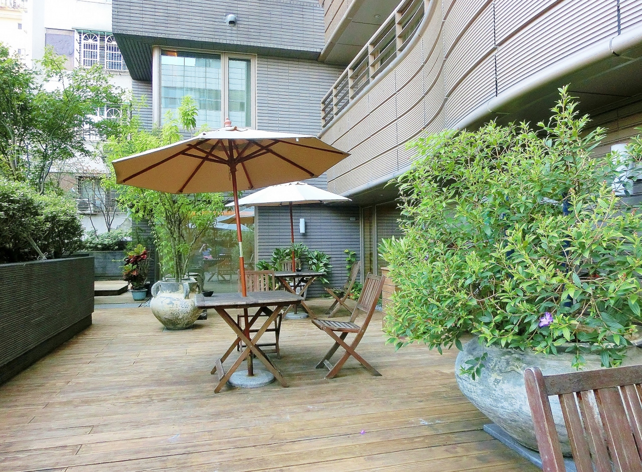 宿泊者全員が2Fのラウンジを使うことができコーヒー、紅茶、ちょっとしたお菓子がいただけます。ラウンジにはテラスもあり天気がよければ外も気持ちよく過ごせます。