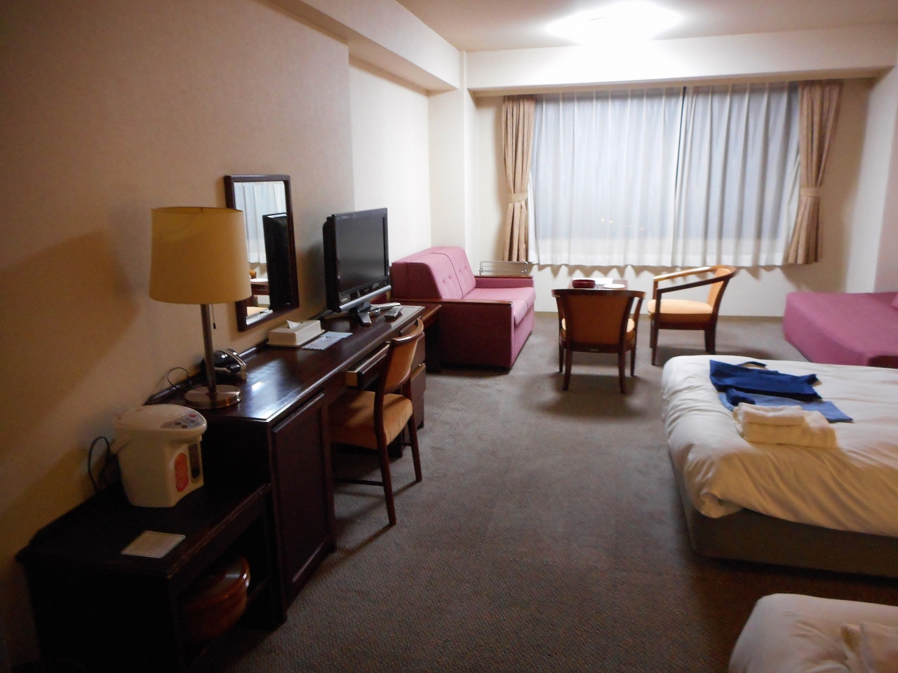 ホテル自体はビジネスホテルをちょっと良くした感じなのですが、内装もこぎれいで女性向きかと思います。今回フォワードスイートという一番広いお部屋にしてみました。