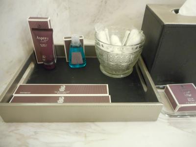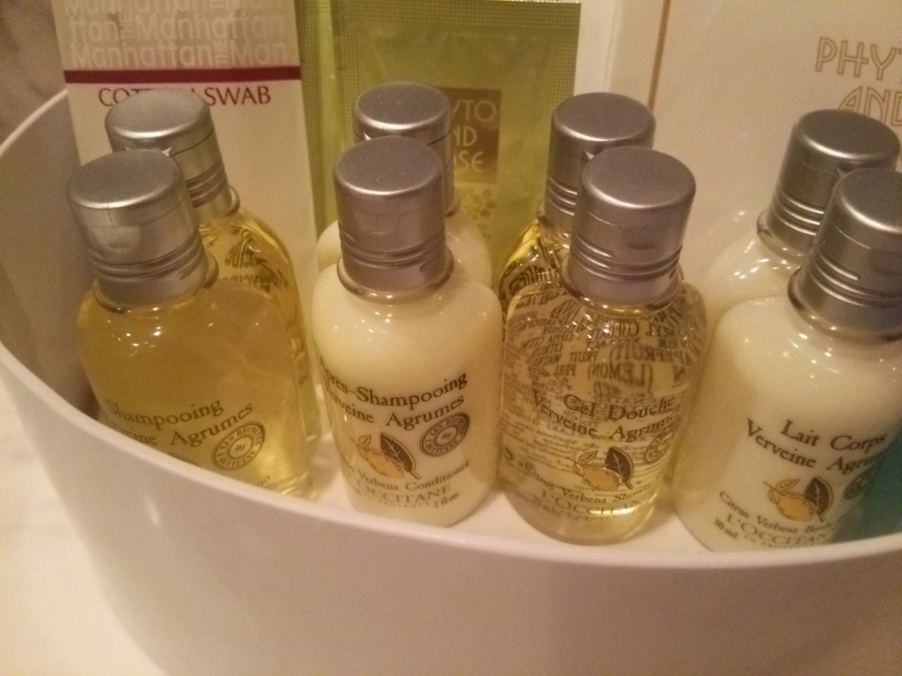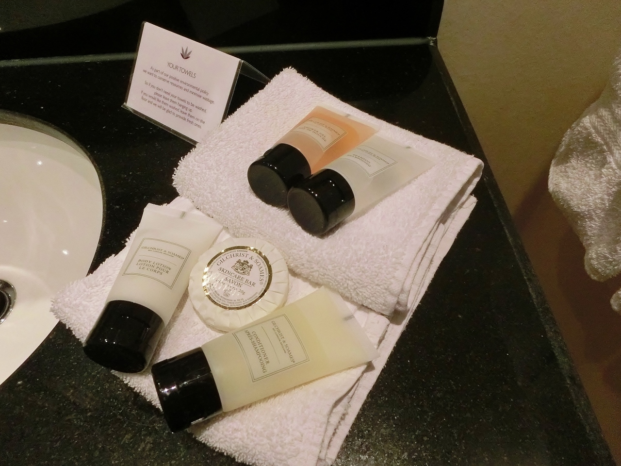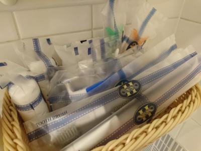 アメニティは歯ブラシなどの一通りのものに加え、ヘアクリップやボディスポンジもついていて有り難かったです。チェックイン時にはバスソルトもいただきました。