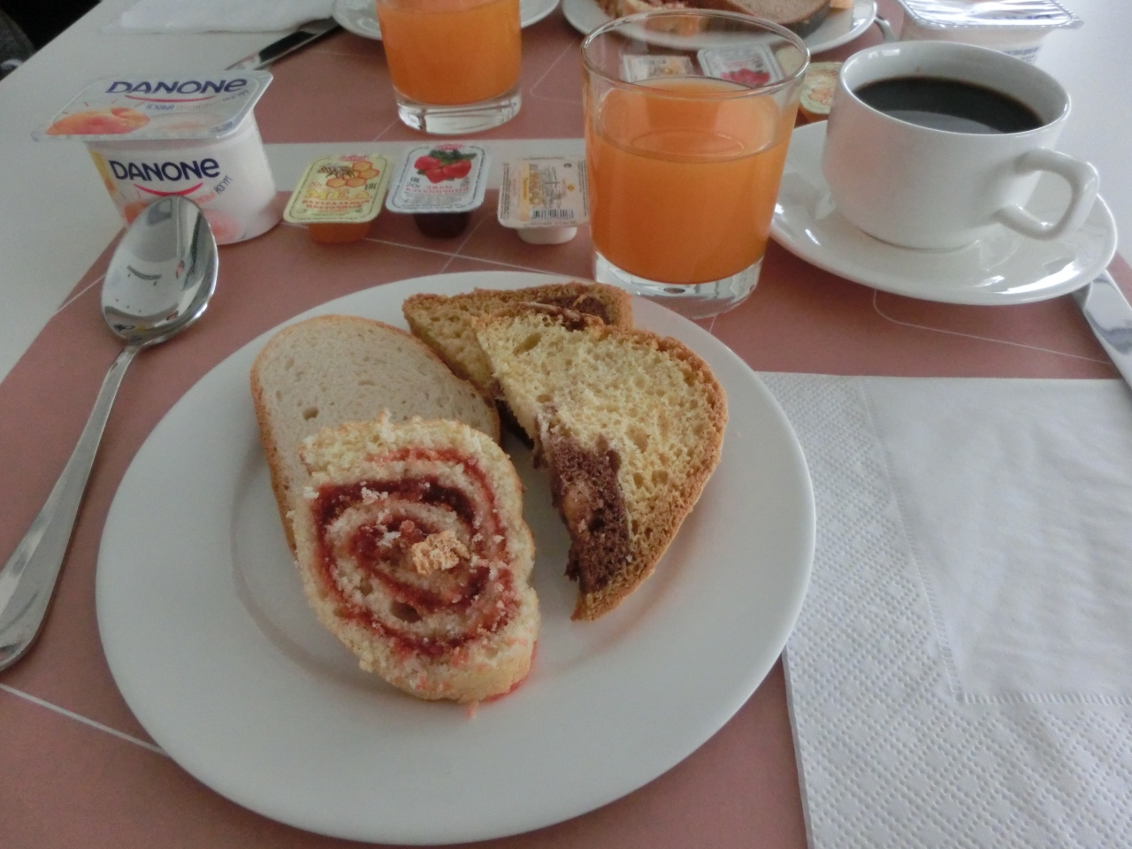 朝食は種類は少ないですがどれも丁寧に作られた美味しいもの、私は特にパンが美味しいと思いました。焼きたてパンが5種類、ドイツのパン、カイザーメンゼルが嬉しかったです。
