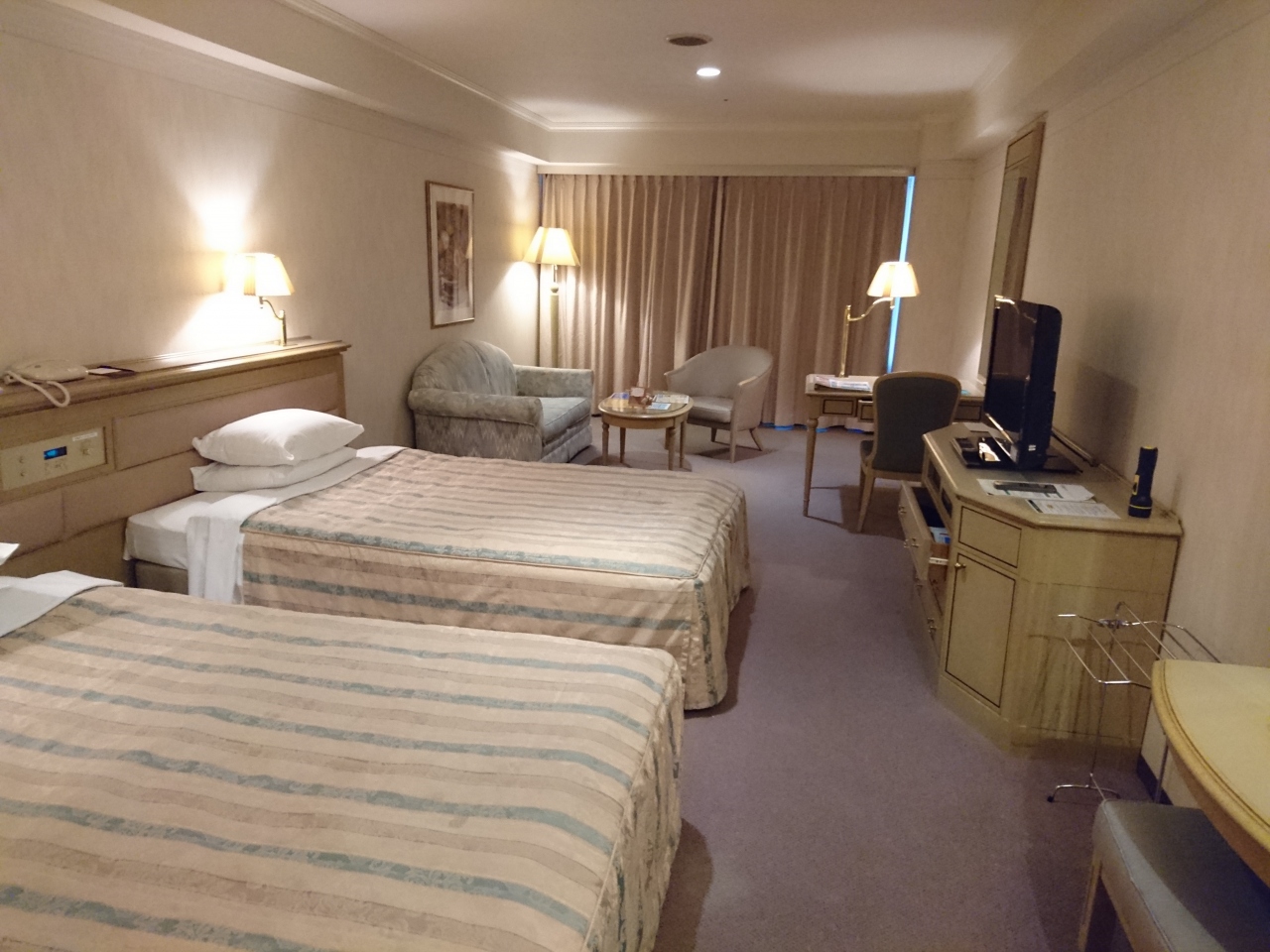 ツインでも20平米と広くはないのですが、一人で一泊するには充分でした。