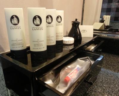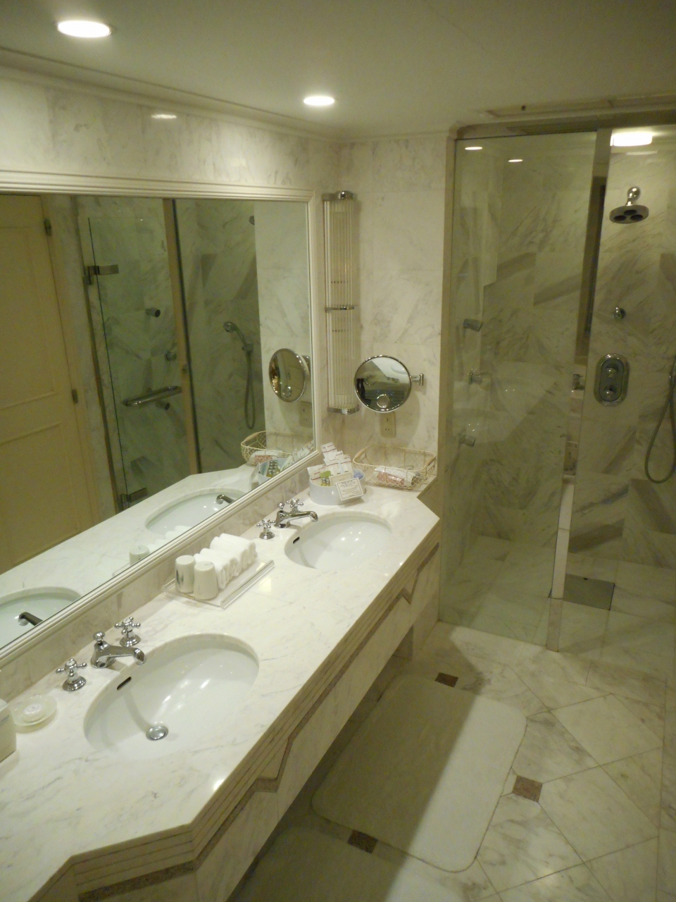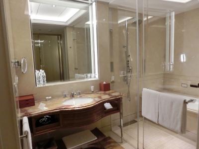 バスルームもひろくてゆったり、スイートだけアメニティが違うらしくイタリア製のものが