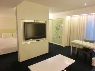 ラグジュアリーホテルのスイートとはそりゃ違いますが、広さ50~60平米はあると思われゆったり。白を基調とした内装はシンプルですが気持ちのよい雰囲気でした。