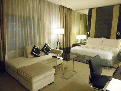 クイーンサイズベッドの部屋で予約したのですがUGされてキングダブルルーム、26平米くらいでした。一人ということもありますが、26平米あるとかなりゆったり使えます。