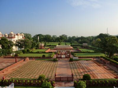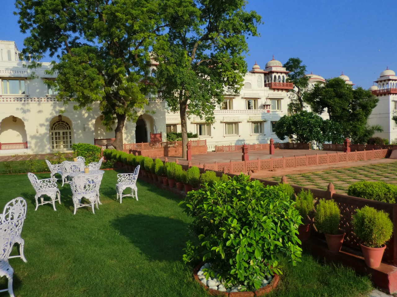 何よりこちらのホテルで良かったのはお庭です。緑でいっぱいのムガール様式の「四分割庭園」。