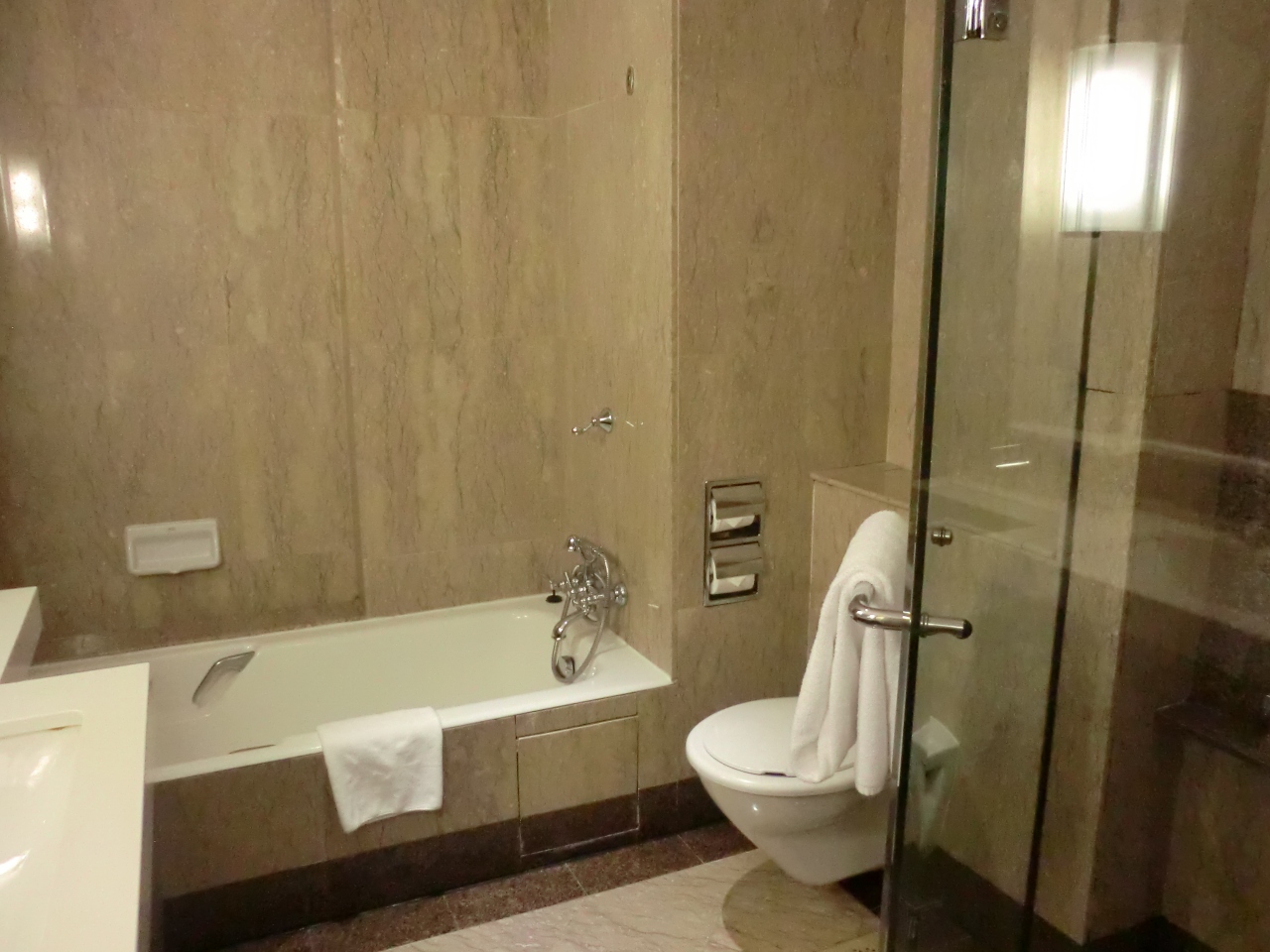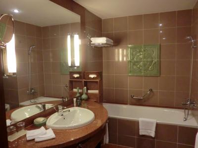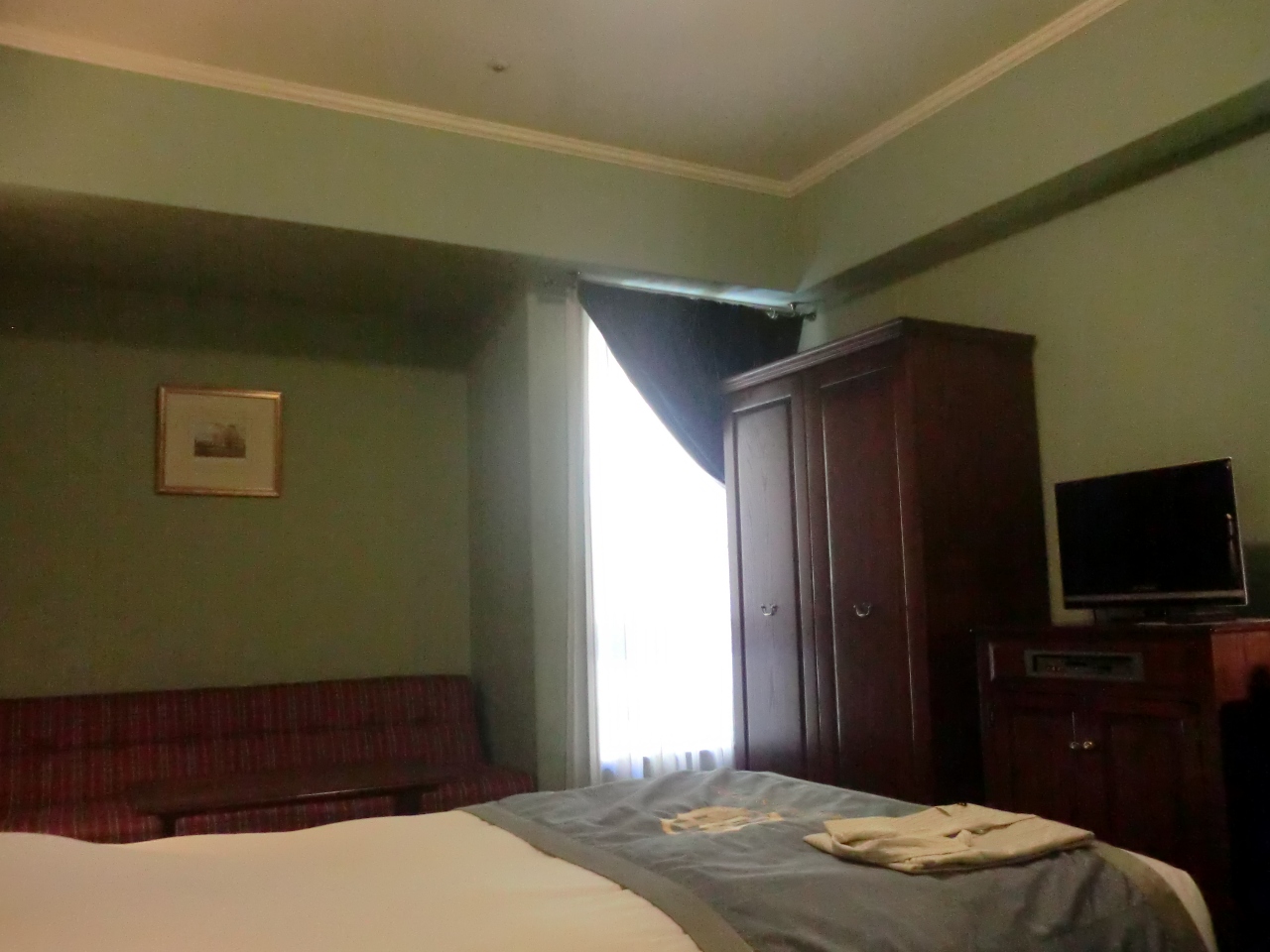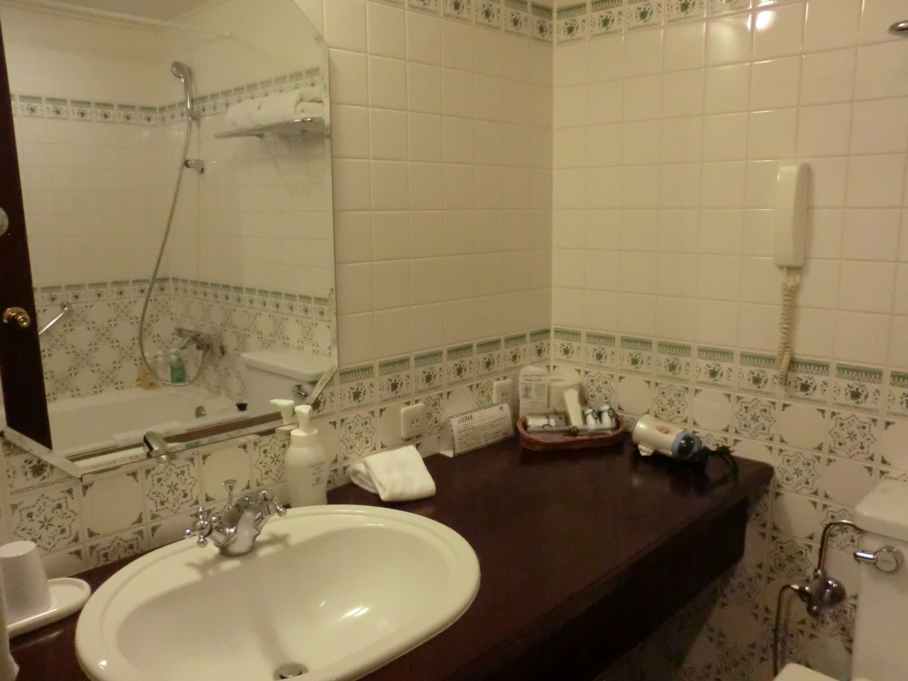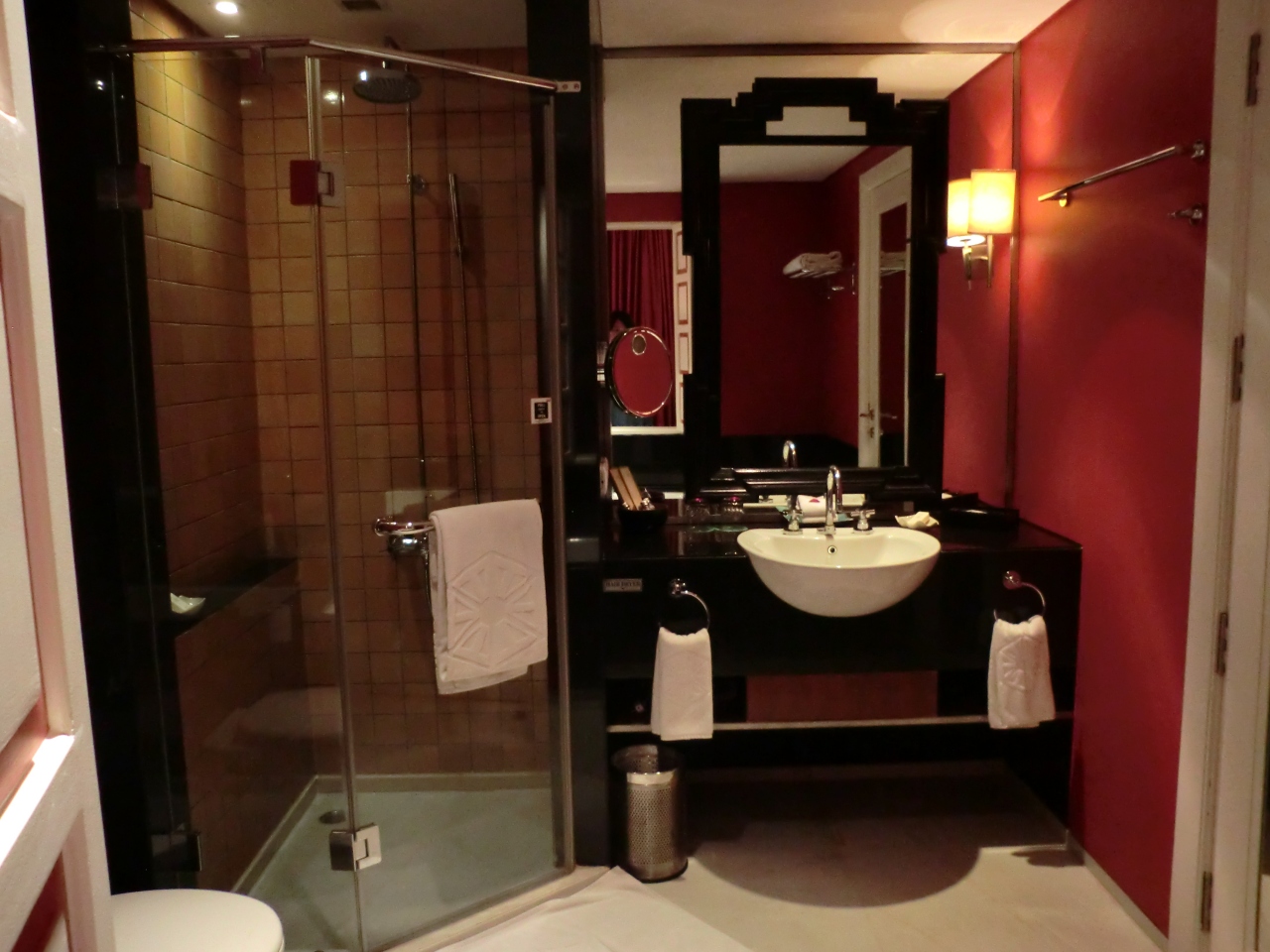 部屋は多分一番安い部屋なんだろうけれど、まあまあの広さでした。バスルームは、こういうところは最新ホテルとは違ってあまりセンスがない感じでしたが、シャワールームは独立していました。