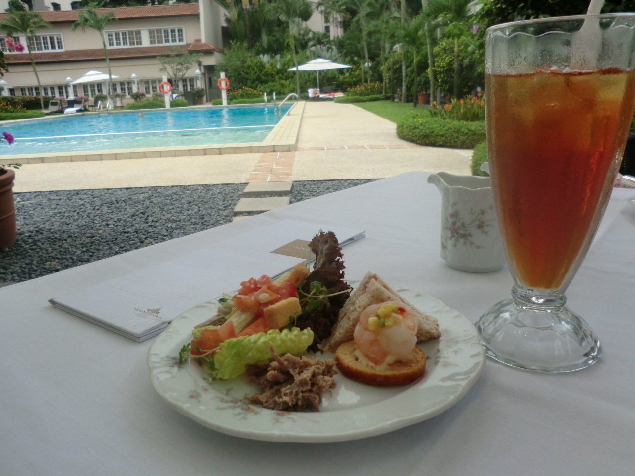 ちょっと暑かったけれど、あえてテラス席にしましたが、プールもあり、リゾート感が満喫できました。