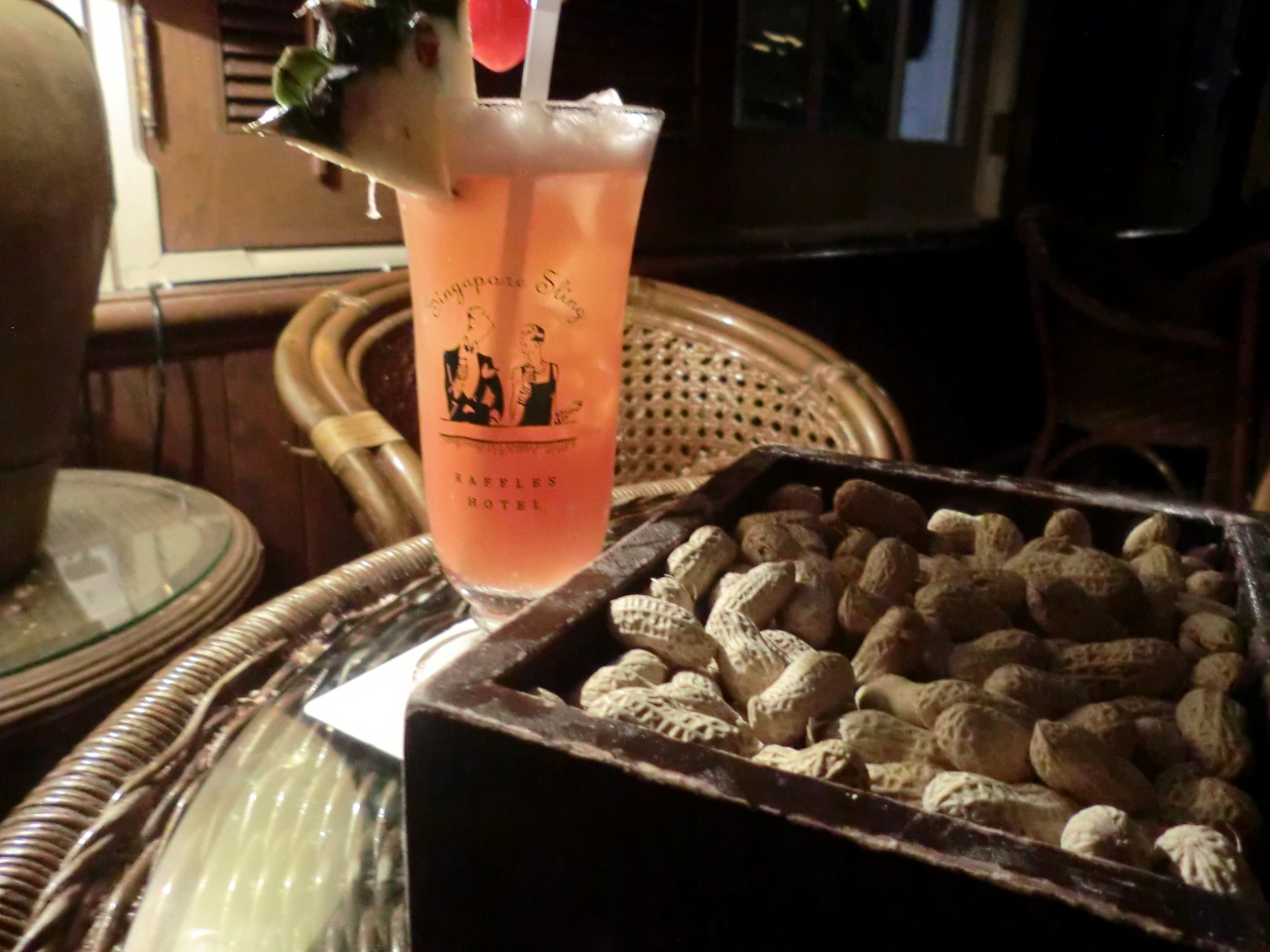 シンガポールスリング発祥の地、ラッフルズホテルのロングバー。