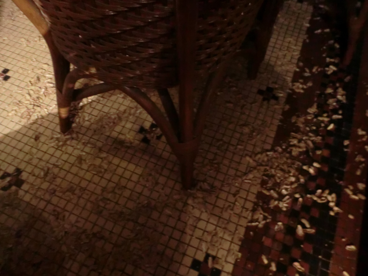 床にはおつまみの落花生のからが散乱していて驚きますが、食べたら下に捨てるというのが