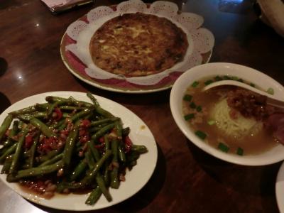他に菜脯蛋(オムレツのような玉子焼き)、四季豆(いんげん豆)の炒め物を注文しましたが
