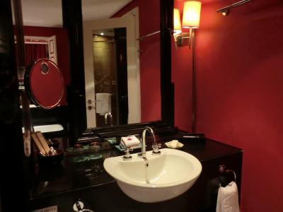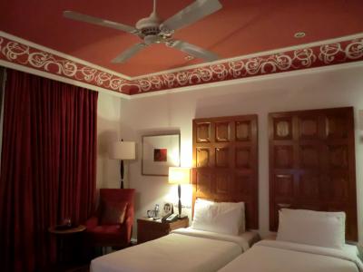お部屋はデリーで泊まったタージパレスよりもこじんまりしていましたが、バスルームは赤を基調とした