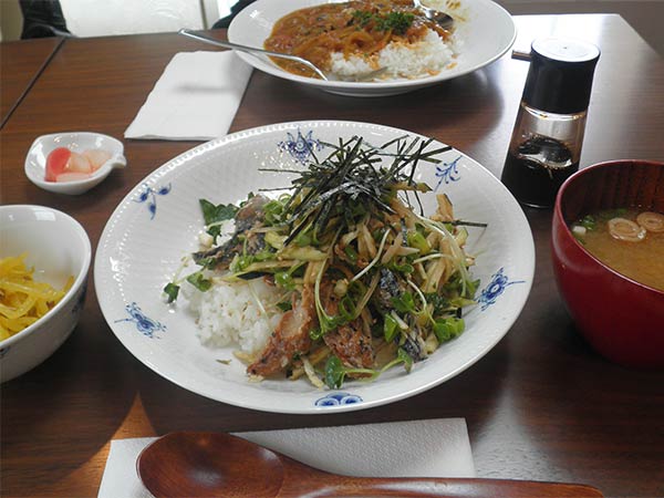 アイルランドライスといって、サバやカイワレダイコン、大葉などがご飯の上にのった、さっぱり食べやすい大人向けのメニュー。