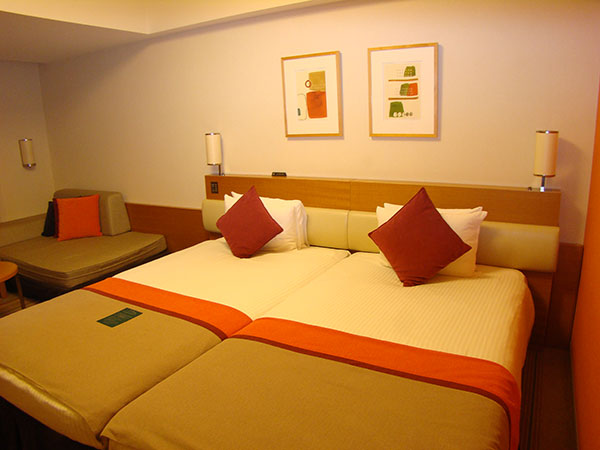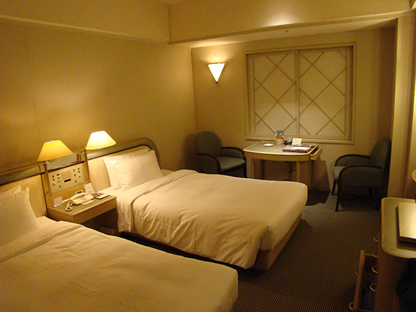 ツインの部屋は「ニューオータニ」らしい落ち着いた感じです。