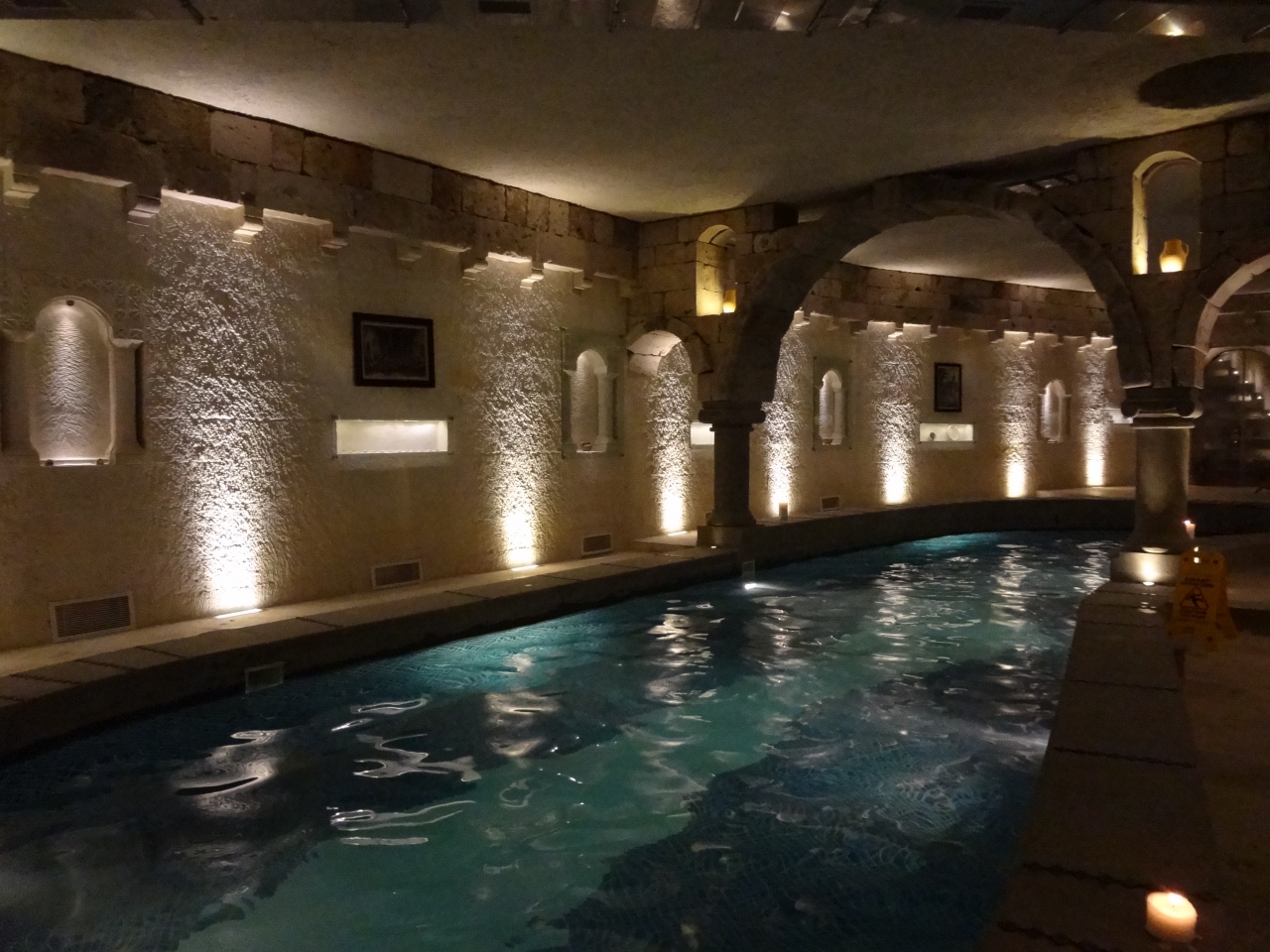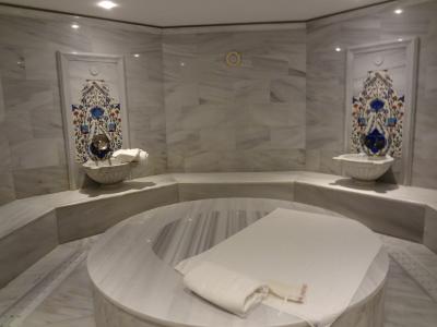 地下にあるプールも、タイルが美しく、ハマムルームがあったり