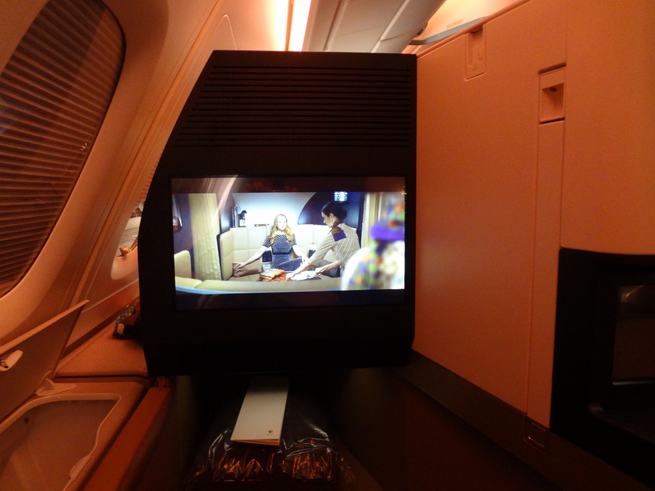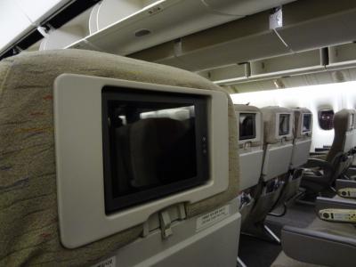 成田-アブダビ間のビジネスクラスのシートは古いタイプで窮屈な感じだし