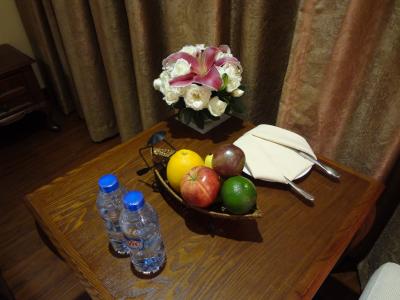 生花が飾ってあったり、ウェルカムフルーツがあったり、快適なお部屋です。