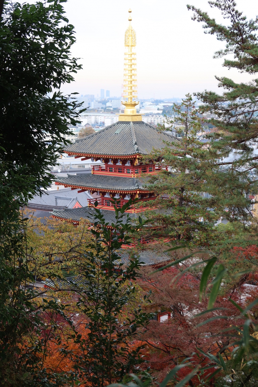 訪れたのは晩秋でしたので、紅葉の間に塔が見え隠れ