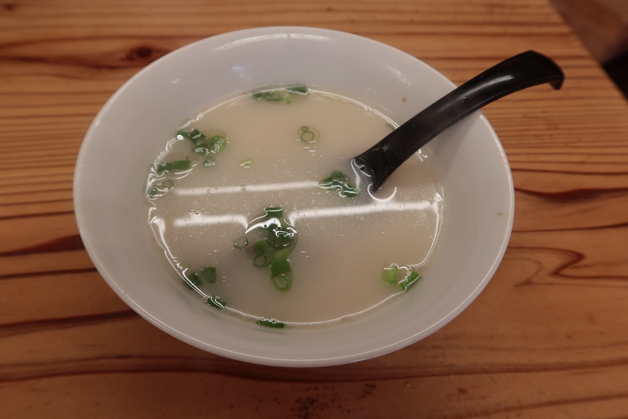 お昼なら無料でスープがついてくる。 これがとんこつ味でうまいです。