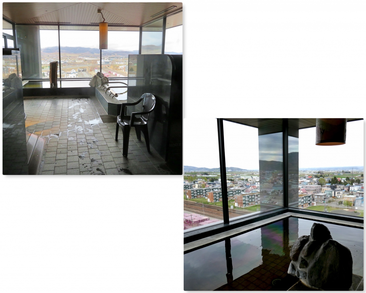 富良野駅から徒歩で3~4分。最上階が温泉になっていて景観がいいです。