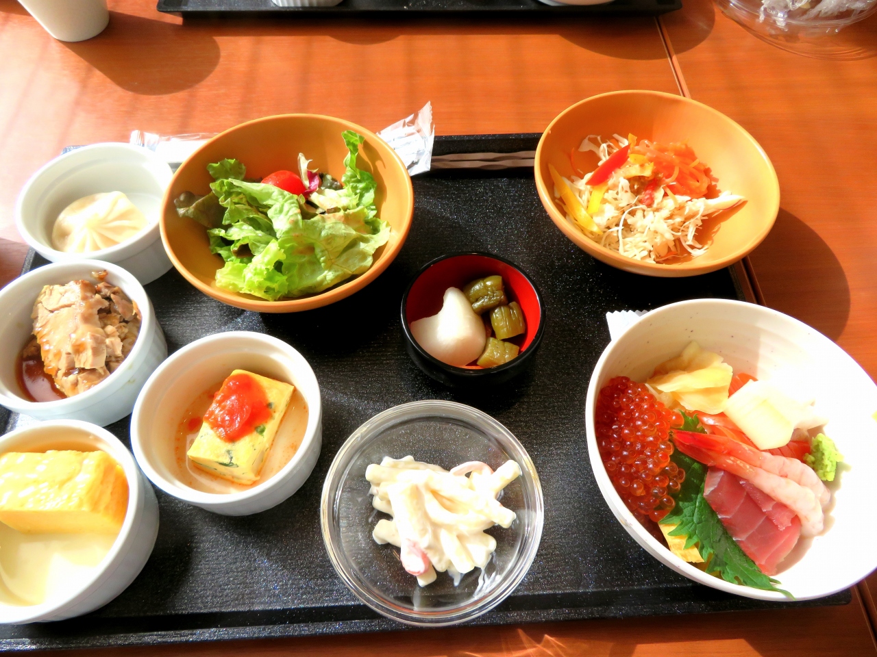朝食はホテル内の居酒屋で提供されます。コンビニも併設されているので