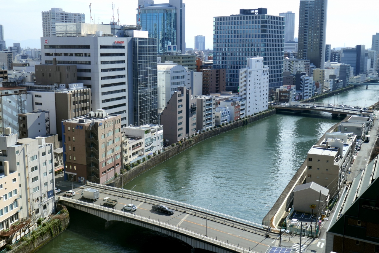 四つ橋線の肥後橋駅から4~5分の土佐堀川沿いにあります