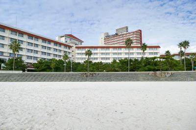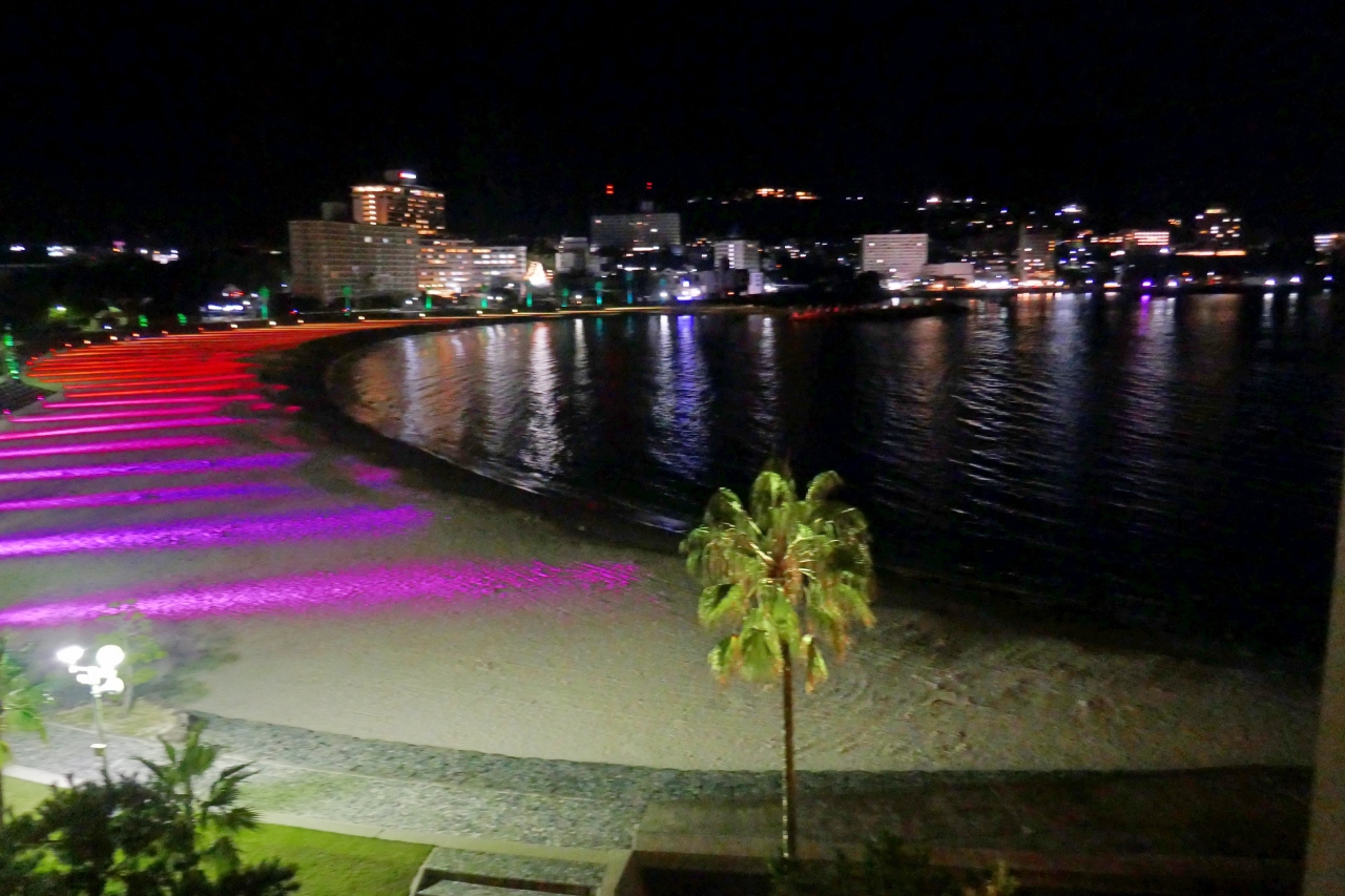 ホテルの裏庭を出ると綺麗な白良浜が拡がっています。