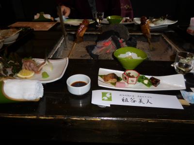 夕食は囲炉裏のある個室で頂き、料理の説明をしてくれる女性の明るさもあって