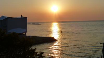 日本海が一望できる絶好のロケーションで、部屋や中庭から見る