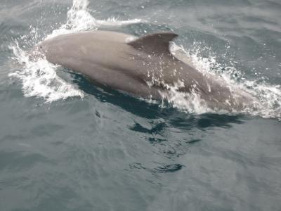 天草でイルカウォッチングといえば本渡から出るのが有名ですが、本渡まで車で行くのが時間がかかって大変です。そこで私たちは天草五橋の橋のたもとから出る船に乗りました...もっと見る