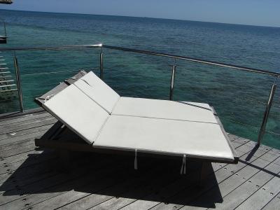 部屋の外には、サマーベッドがあります。とりあえずここで寝そべってみまし...