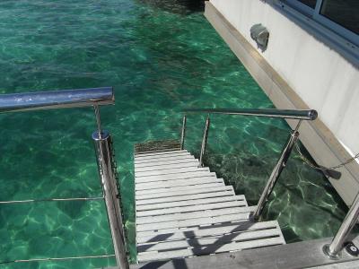 サマーベッドの下には、階段があって、海へ直接入れます。シュノーケリング...
